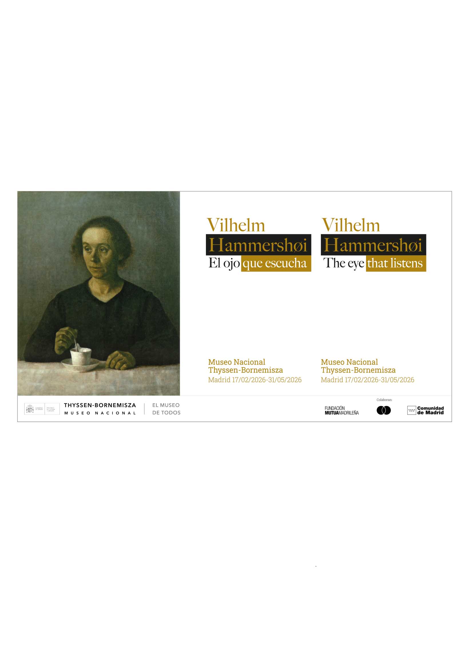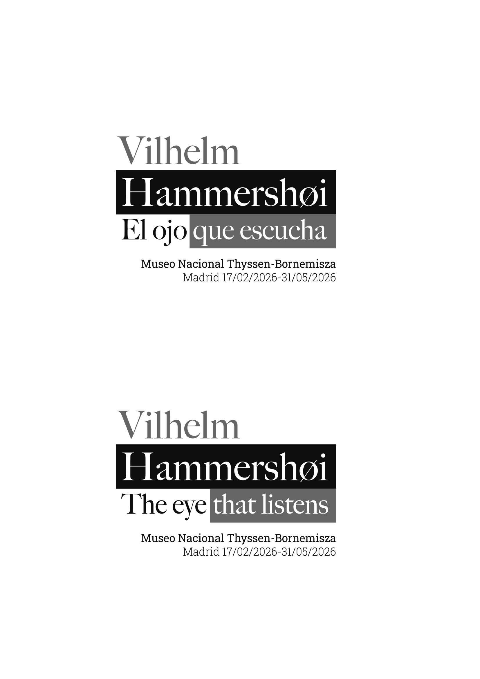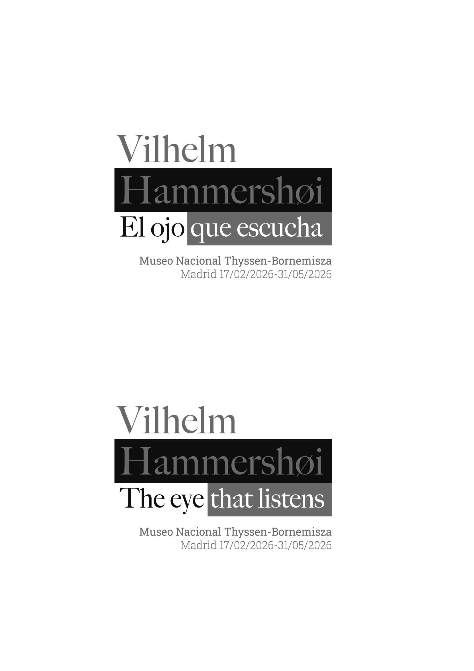 We submitted a graphic design proposal for the Museo Nacional Thyssen-Bornemisza in Madrid, as part of the official public tender (Exp. MNTB25-072) for the visual development of three temporary exhibitions. One of the key requirements was the creation of a distinctive mancheta (graphic header) for the upcoming exhibition “Vilhelm Hammershøi: The Eye That Listens”, scheduled for early 2026. This retrospective will be the first in Spain dedicated to the Danish painter, known for his haunting interiors and poetic silence.